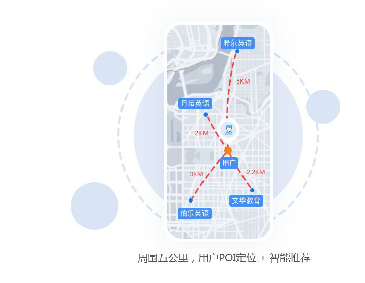 幫助教育用戶更便捷、更高效的完成機(jī)構(gòu)選擇和內(nèi)容信息決策,讓周圍五公里的人都來圍觀你