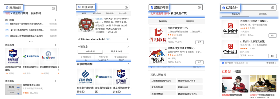 平臺覆蓋百度系的搜索、信息流、地圖等多渠道教育用戶曝光場景